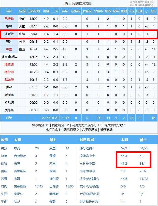 問題二(空位投籃把握度太低):波斯特作為空間性內線他在外線的投籃機會都是大空位,但是各種離譜不中甚至出現(xiàn)三不沾,庫里第二節(jié)也有多次空位三分不中,反觀太陽機會球基本都把握住了,想要扭轉局勢必須要投中這些機會球!