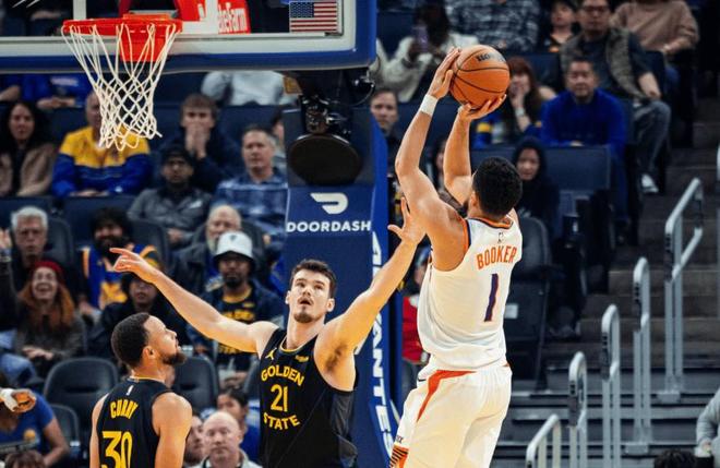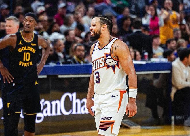 另一邊的太陽隊(duì),本場比賽之前,15勝12負(fù)排名西部第7;即便太陽休賽期送走了杜蘭特和比爾,但他們?nèi)匀痪邆錄_擊季后賽的能力。