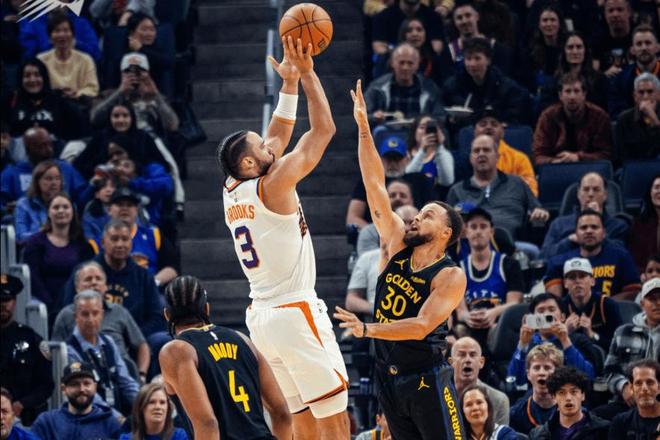 首節(jié)比賽,太陽進(jìn)攻火力拉滿,單節(jié)轟出44分并占據(jù)主動權(quán);第一節(jié)比賽結(jié)束,太陽44-32領(lǐng)先勇士12分。